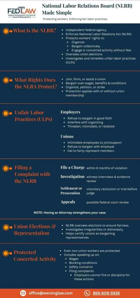 At Federal Employment Law Firm of Aaron D Wersing PLLC, we understand and know the complexities of labor law and the NLRB process. Our team is not only knowledgeable but also experienced in handling these cases.